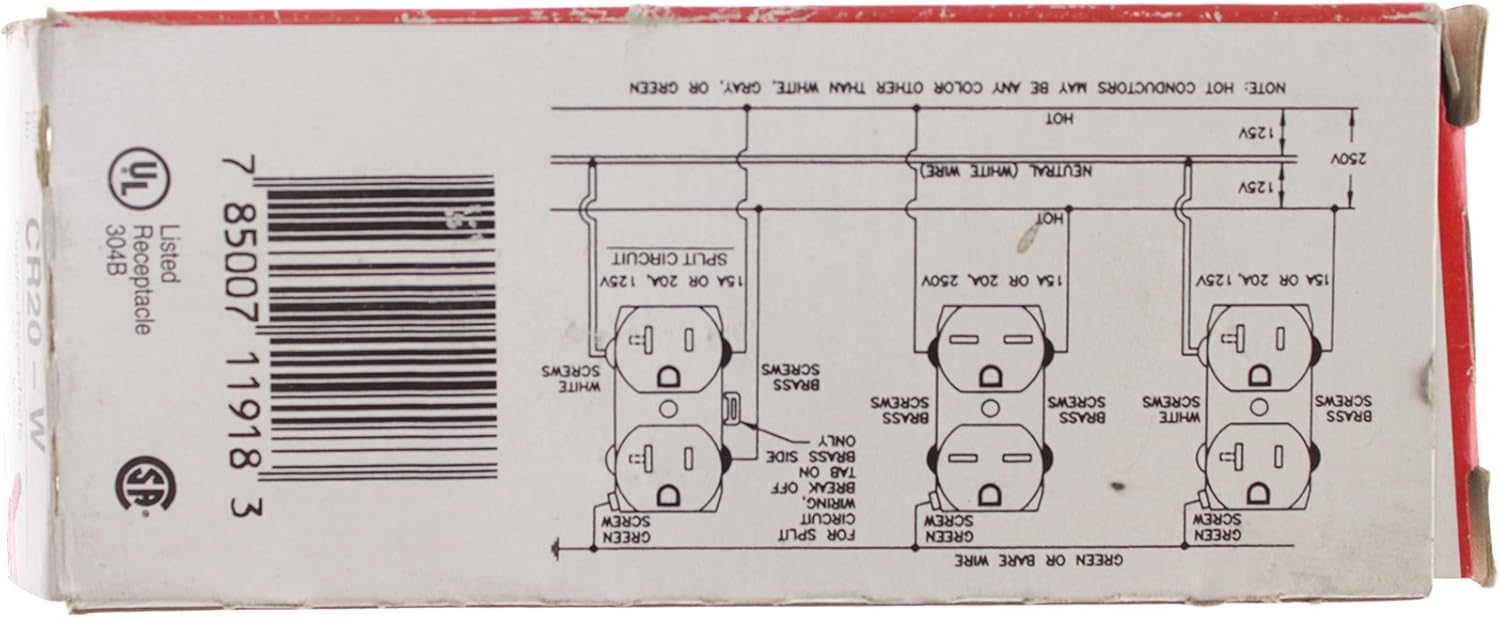 Pass & Seymour Legrand CR20-W Spec Grade Receptacle, 20A, 125V, White (10 Pack)